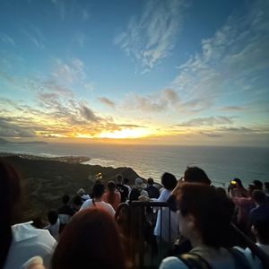 ハワイに行ったら、ダイアモンドヘッド登山は一度はしておかないと思い参加しました。バス待機中は雨が降って来ましたが、登りはじめたら止んで来ました。登頂と同時に綺麗な日の出を観ることができ最高でした。ファーマーズマーケットも楽しむ事ができもう少し時間があったら、良かったです。