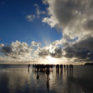 海に入り、日の出を迎え記念写真タイム。あいにくの曇りでしたが陽が差すと雲のグレーと太陽の赤いグラデーションを描き、とても美しかったです。スタッフがたくさん写真撮ってくれました。