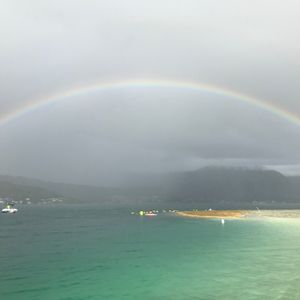アロハ!キャプテンブルース天国の海ツアーです。この度はご参加いただき誠にありがとうございました。 スタートが土砂降りだと、さぞびっくりされたと思います。そして、素晴らしい虹の写真ですね!!めまぐるしくお天気が変わったと思いますが、弊社がツアーと行っているカネオヘと言う地域は非常に天気が変わりやすく、雨がふったと思えば、虹が出て、晴れて、と自然の美しさを体験できる素晴らしい場所です。みどり様もその素晴らしい自然を体験していただいたようで、嬉しく思います。またのお越しをスタッフ一同心よりお待ち申し上げております。