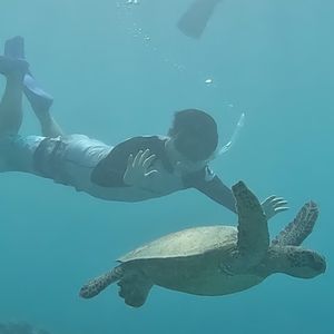 77歳の両親を連れて行きました。インストラクターの方が最初に両親を浅瀬で指導してくださり、浅瀬でも沢山の魚を見れたと喜んでいました。私達家族は、Deep Seaのエリアまで行き1時間程度シュノーケルを楽しみました。イワシやカメがシュノーケルで見れる事は稀ですし、その他の魚も沢山いました。何より、その間も両親が浅瀬でずっとシュノーケルしていたらしく、また、帰国してもこのツアーがハワイの一番の思い出であったと話しています。