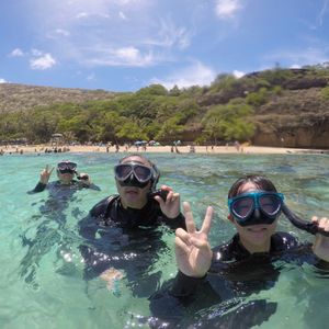 私はこのツアーに母と一緒に参加しました。母は50歳以上で、全く泳げません。母はこのツアーにとても興奮しつつも心配していて、最初の段階で辞めようとしていましたが、ダンが緊張しないように教えてくれ、口で呼吸する方法や少しの泳ぎのスキルを教えてくれました。その後、母と私はこのツアーを無事に終え、ダンのガイドでたくさんの異なる魚を見ることができました。それは楽しかったです。私たちはダンにこの素晴らしいシュノーケリング体験を提供してくれたことに感謝しています。将来オアフに再訪する際には、また挑戦したいと思います。次回はもっと上手くできることを願っています :D)))