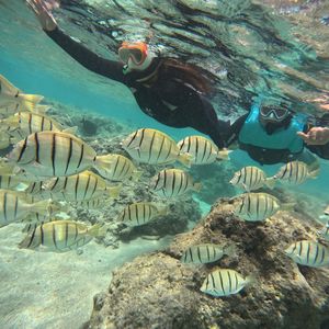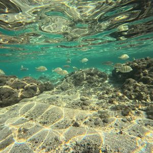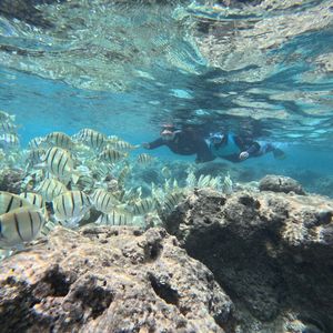 夫婦で参加しました。当日は朝から雨が降っており心配していましたが、ハナウマベイに近づくと止んでいました。海は少し荒れていたようですが、見たことないような色をした魚たちや、ウミガメにも会えました。水族館の中にいるようで感動!海の状況によって違って見えそうなので、またハワイに行く機会があれば必ず参加したいです♪ハナウマベイはワイキキからもそこまで遠くないので、半日あれば参加できるというのが、時間に限りのある旅行者にとって良いと思いました。ガイドさんも丁寧で優しくてそういった点からもおすすめです☺︎