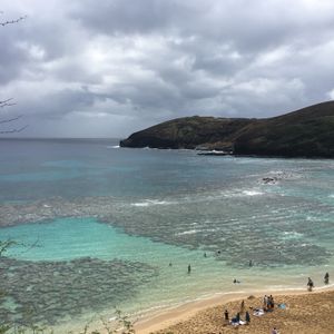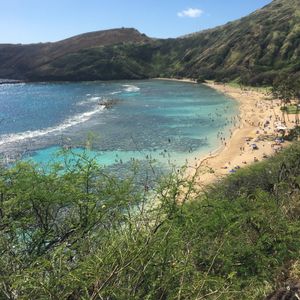 おにぎりはあったかくてうれしかったけど、4人申し込んだのに3個しかなかった。バナナやお菓子水は人数分ありましたが・・・。ダイヤモンドヘッド駐車場で懐中電灯持たされ解散。周囲の人を見ながらハイク開始。なだらかだけど足場のあまりよくない坂道と階段40分くらいかかって展望台へ。人が少ない日だったらしいですが展望台は多くの人で埋め尽くされゆっくりできませんでした。集合時間ぎりぎりに下山。ハナウマ湾に向かいました。シュノーケルには、海水が19度ウェットスーツ必要と聞いていました。レンタルするところもなく不安でしたが天気よく海水は冷たいけど問題なくシュノーケルできました。海亀には会えませんでしたが魚たちと泳げました。最後に温かいマラサダ美味しかった。マラサダくわえての写真撮影はよくわからなかったけど。楽しい思い出になりました。
