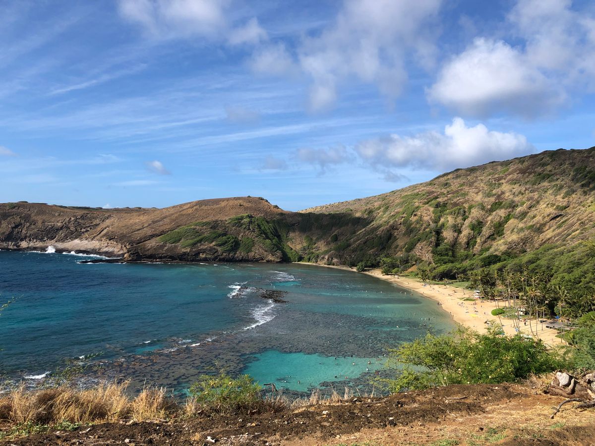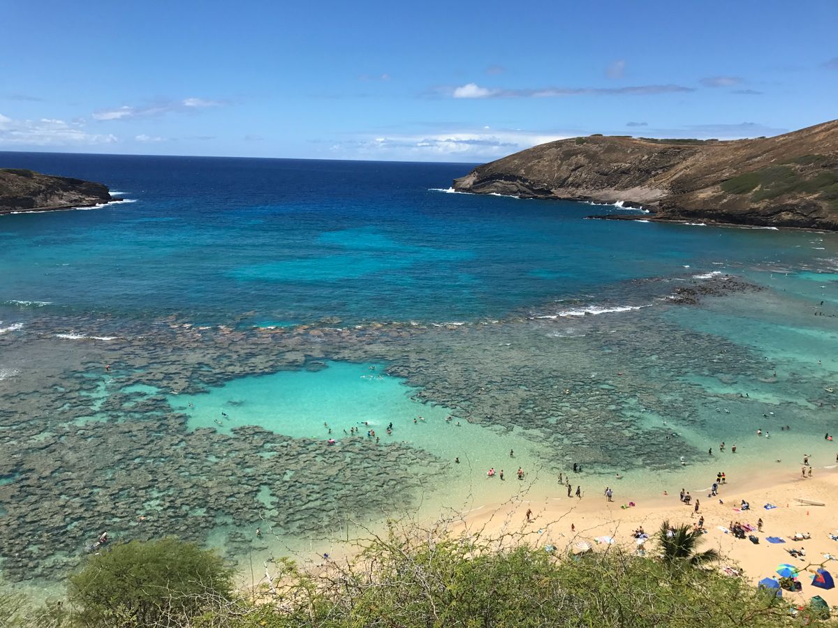 ハワイ初日に参加しました。朝9時頃に着いてレンタカーを借りて参加しました。ツアーに参加しなくてもハナウマ湾のシュノーケルは出来ますが、初めての方はツアーに参加することをオススメします。マイシュノーケルはあった方が良いですが、荷物になるのでレンタルが含まれるツアーに参加してよかったと思います。サンゴが見える浅瀬の海ですが、砂まみれになるのでご注意を。簡易的なシャワーしか無いので、ハナウマ湾に行ったらホテルに一度帰るスケジュールでいた方が快適に過ごせると思います。駐車場から結構歩きますので、トロリー用のお金、チップ分は持ち歩いてください。シュノーケリングは結構波がありますので、泳ぎに自信がない方は無理をしないでください。魚は結構泳がないと見つけられませんので。。。あと、塩が強いので、水分、目薬等は持ち歩いた方が良いと思います。サンゴには当たってはいけませんが、擦れてしまうこともあるので、上下のラッシュガードがあると怪我をしなくてすみます。綺麗な海で魚たちをみれることは貴重なことなので、是非体験してみてください。