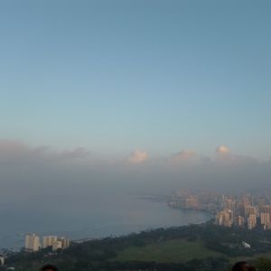 私たちは8合目あたりで日の出を見ました(写真)。山頂では太陽と反対側に朝もやの中にホノルルの町も広がり、きれいでした。