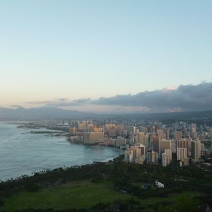 旅行2日目朝に参加しました。ダイヤモンドヘッドにツアー車で向かう途中、ホノルルの夜景がきれいに見えるポイントがあり、ガイドさんが停車して撮影時間を取ってくれました。
