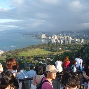ハワイは三回目でしたがどうしてもダイヤモンドヘッドからの朝日を見たくて初めて一人で参加しました。うわさには聞いてましたが日本人ばかり。ピックアップ場所ではちょっと不安でしたが片言な感じで名前を呼ばれ出発。着いてからは時間もそんなにないのでハイペースで歩いたせいで汗だくでした。だけどあの頂上からの景色は疲れを忘れさせてくれました。感動も束の間、次のKCCへいくため下山。ひとつ思ったことは、若者は、サンダルやヒールのある靴で登るのは無理じゃないのかなぁ。←おじさんの呟き。KCCではまた日本人の多さにまたびっくり!人多すぎで時間がなく色々あきらめてしまったのが残念。