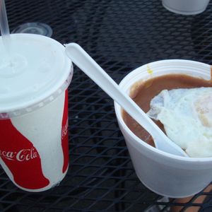 バスに戻って近くのドライブインで朝食(ロコモコ)。