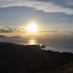 山頂で日の出を見ると思ってました。それは冬の話だそうです。登山口は6時に開くそうで、日の出は6時3分くらいなので、ここで日の出を見てから上ります、と説明されてびっくりしました。日の出を見るところも人がたくさんいてかき分けるようにして写真を撮りました。シャッターを押しますよーとスタッフの方は声をかけてくれても、撮ってくれた写真はバッチリ逆光で人物が暗く、とても適当に撮られた感じがしてショックでした。ゲートが開いてまた車に乗り、歩いて登るところまで進んで、登山スタートです。人が多いとにかく日本人のツアーの塊。遠足より多い人数で山に登る感じです。途中からは結構道が狭いし足場も悪いので一列になって進みます。ちょっとでも写真を撮ったりしている人がいるとそこからさらに渋滞が始まりました。山頂に着くころにはすごい息切れと予想以上の汗…。筋肉痛になるほど疲れちゃいました。でも綺麗な海と空、ビーチを一望でき、一度は登ってよかったと思います。どうせ日の出が見られないなら、シャトルバスとかで登っても良かったかなーと思いました。冬なら山頂で日の出が見られるようです。以前より登る人が増えているとか。ハワイが初めてのひとや山登りが好きな人にはいいかもしれません。