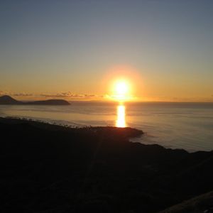 夏は、日の出が早いので、登山入り口付近で日の出を見ました。