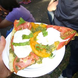 フリーマーケットは、おいしいパンや野菜、ジェラートなど、食べ物がほとんどで、植木などもたくさん売られていました。