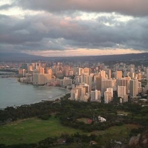 早く上ると、ワイキキの夜景を見ることが出来ます。