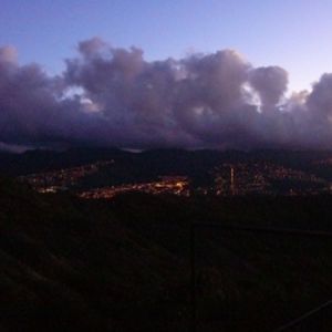 早朝5時出発でダイヤモンドヘッドに登ってきました。パークには6時前に着き、周りは薄暗くライトがないと登れないのではないかとガイドに確認したところ、これからすぐに明るくなるとのこと。歩き出して10分もすると周りの景色が見える程明るくなり、すると100段前後の階段が出現、そしてトンネル(明かりがついてます)、さらに階段、最後は螺旋階段、日ごろ運動していない私は息が切れてしまいました。でも、山頂近くではホノルルの美しい夜景と山の向こうの美しい景色に魅了され、疲れを忘れてしまいました。しばらくすると朝日が昇り始め、日の出をじっと眺めて時間を過ごし、帰りは下りで楽々下山。その後、レインポードライブインでロコモコの朝食。これがまた美味しい。ここで、サイミンをテイクアウトしてホテルに戻り食べてみると、こちらもGOOD!登頂開始時間、食事全て計算された大満足のツアーでした。山頂は寒いと聞いていたので上着を持っていきましたが不要でした。水は持参した方が良いと思います。