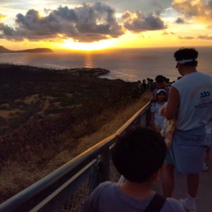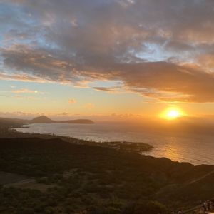 頂上に着き風が吹く中、日の出の光景はなんとも神秘的。宿泊先のワイキキのホテルも見えて感慨深かった。参加して本当に良かった!