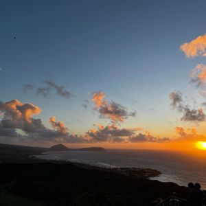 朝、暗いうちの集合だし、集合場所が分かりづらい。集合場所に日本人ガイドさんがいるのでそれは安心しました。暗い中、登るので携帯のライトを付け、足元を気をつけながら行きますが、途中までは、舗装されてるけど途中からは足場が悪いのでデコボコ。帰りは、朝露で湿っているので滑りやすいので気をつけて。集合時間は、5時30分。10分くらいでダイヤモンドヘッドの裾野。登るのに普通に歩いて30分ほどかかり、私達が行った時は日の出が7時11分。待つ時間が長く、日の出になったかと思ったら、帰りの集合時間が7時40分。慌てて降りて来ました。最上階の手すりが朝梅雨でバタバタ。手すりがサビで茶色い梅雨が垂れてて服が茶色い梅雨で汚れてしまった。多くの方が手すりに触った人全て汚れてました。