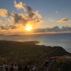朝早くに集合で、ダイヤモンドヘッドの門が開く前に麓あたりにバスで到着。門が開くまで真っ暗だったので夜空が見られました。日の出見る前にこんな綺麗な夜空が見られるとはと思うくらいここで感動でした。
