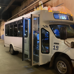第1便で参加したため、5:00ちょうどにアロハランディングに「BWT」と書かれたバスが来ました。
