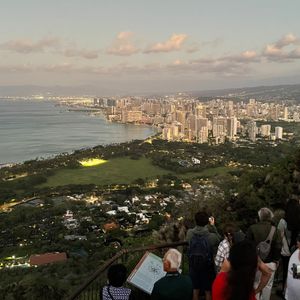 ダイヤモンドヘッドのふもとからの夜景、頂上からの朝日など景色は抜群に良かったです。ただ、登頂開始からかなりハイペースで休憩もなしに登り続けたのですが、日の出は間に合いませんでした。まあそれも1つの思い出ですね!(ちなみに11月上旬に登りました。)