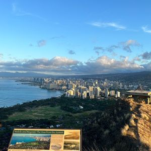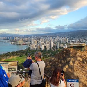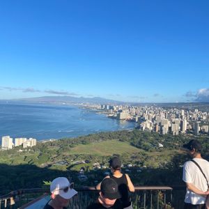 早朝5時にシェラトンワイキキホテルに集合し、バスで向かいます。お盆ということもあってか登頂前は結構な人がいました。途中トイレはありませんので登る前にあるトイレには行っておいて下さい。また、水分補給のため水筒等持参が〇です。忘れた方には販売していました。道も割と整備されていましたがスニーカーが良いと思います。何度か渡ハしていますが初ダイヤモンドヘッドでした。景色は様々なパンフレット通りで素晴らしいです。一度は登ってみることをオススメします。