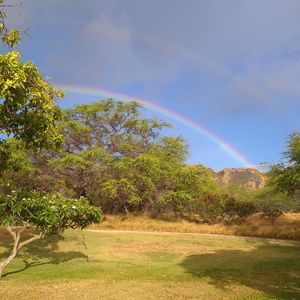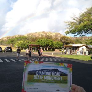 ダイヤモンドヘッド 日の出ハイキング& KCCファーマーズマーケットツアー カイルア自由散策付きプランに参加したのですが、ダイアモンドヘッド頂上付近でみた虹が素敵でした