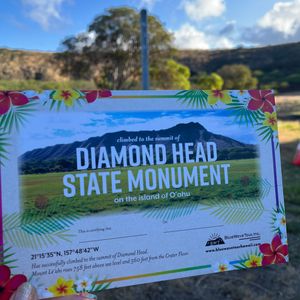 7月の日の出は6:00前なので登る前から辺りが明るくなっていました。日の出が遅い時期だと足元が真っ暗な分、流れ星も見えるそうなのでまた時期を変えて楽しむのも良さそうです。6:00にゲートが開くまでしばらく待ちました。途中休まず登り続ければ、30分程度で頂上に着きます。登山中は何度も雨が降ったりやんだりしたので、滑りにくい靴がおすすめです。下山後は登山証明をいただき、写真を撮っていただいたので良い思い出になりました!ちょうどそのタイミングで虹が見れたので嬉しかったです。下山してヘトヘトのなか、駐車場でマラサダを渡され、温かいうちに食べてね!と立ちながら食べているツアーの方もいたので、今回朝食付きにして良かったなと思いました。