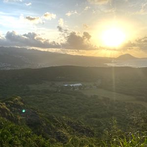 日の出ツアーとの事でまだ外が暗い5時にホテルまで迎えに来て頂きましたが、6時の開門時にはすでに明るくなっているので頂上から日の出を拝む!と言う感じではなかったです。ですが日が登ってからの方が足元が明るいので登りやすく、また開門と同時に登り始めるので、登る際に降りてくる人とすれ違う事がなく登りやすかったので結果よかったなと思います!朝からとてもいい運動をしてから食べるマラサダは本当に美味しかったです。足元は普段の運動靴でOKですが、手すりなどに年季の入ったサビが所々付いているので、完全に汚れても良い服装、靴が良いかと思います。個人でバスやタクシーで日中に登ることも検討していましたが、ツアーで開門から登れて予約して本当によかったです◎