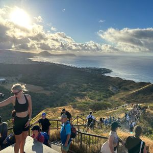 朝5:30集合ですごく朝活でしたが、ダイヤモンドヘッドは天気が良くて日の出も見れました!30分くらいのハイキングで少し疲れましたが、綺麗な景色に癒されました!その後マーケットで朝ご飯、カイルアから天気があいにく曇りで海は綺麗に見れませんでしたが、サンドバーへの船ではバンド音楽を聴きながらランチをして向かうことができ、楽しかったです!揺れも少なく船酔いは大丈夫でした。シュノーケルでは魚が見れたり、大きなウミガメも見れて楽しかったです!あとは無料でカヤックやサップも楽しめました!