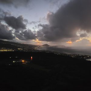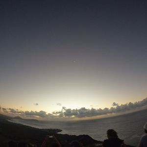 暗闇のなかダイヤモンドヘッド入場口のトンネル前で車の外で開門を待つ間星空が綺麗で開門後30分の軽い登山?ハイキング登頂後明け行く中での最高の朝日、360度のパノラマのはじまり、良い一日の始まり