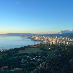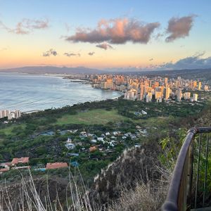 初めてのダイヤモンドヘッドのハイキングでした。道も整備されていて登りやすかったです。ただ、日頃の運動不足で少々息が上がり沢山の人たちに抜かれてしまいました、、が、だんだん明るくなってきて景色を楽しみながら登頂できました。まだ暗いうちから登り始めちょうど山頂で日の出が見れました。雲が多い日だったので少し残念でしたが、爽快感もありとても清々しい朝でした‼︎運動後の朝食もとても美味しくいただきました。ドライバーさんがレストランまで案内してくれました。送迎のドライバーさんは日本の方でした。道中も楽しいおしゃべりで車内を盛り上げてくれました‼︎下山した時に効果音⁉︎着きで登頂証明書をいただけます。星空も忘れられません‼︎貴重な体験は宝物になりました‼︎