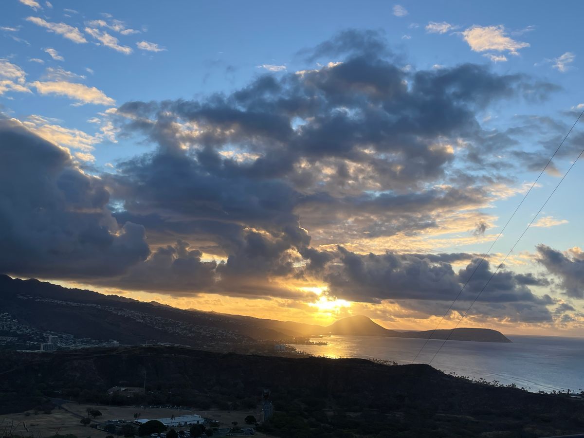 登り切って日の出見たら結構感慨深いシーンになります。晴れているとキレイにワイキキビーチやホノルルの街並みが見れるので楽しいです。