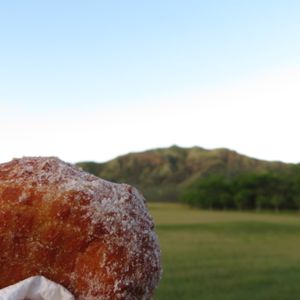 仕上げは近所の有名な揚げたてのドーナッツを、おいしくいただきながらのワイキキ帰還。