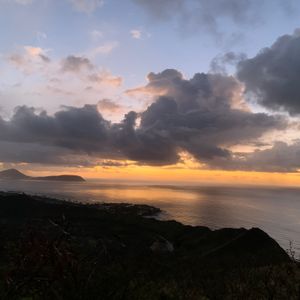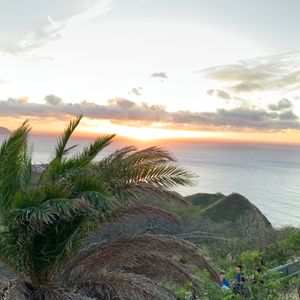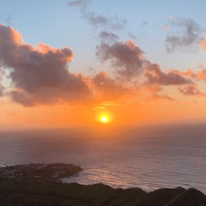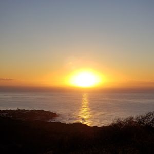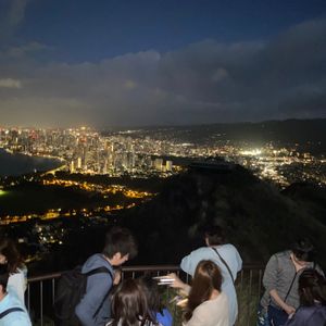 ダイアモンドヘッドに到着し、登り初めてから気がつきましたが、星がすごく綺麗でした。周りが真っ暗なため、空一面に星が見えて田舎育ちの私でも見たことがないような星空でした。実際は登るのに必死であまりゆっくり星空を見られませんでしたが、あれはすごかったです。登り終える頃には少しずつ明るくなり、頂上から見る景色もとても綺麗でした。日が登るまで時間がたくさんありましたが、景色を見ながら待てるので飽きませんでした。帰りの集合時間に合うか心配だったので、日が登る前に少しだけ下り、人がたくさんいるところとは離れたところで日の出を見ました。とても綺麗で感動しました。帰りは少し急ぎ足で降り、集合時間調度くらいに駐車場まで降りることができました。もし、人が大勢いる頂上で日の出を見ていたら降りる道が渋滞して間に合わなかったかもしれません。