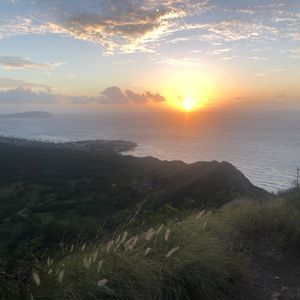ダイアモンドヘッドにも行きたいなと思ってて…行くからには朝日が見たいと思い見つけたツアーでした。山登りは階段もありで私的には辛かったけど休み休み登り…頂上へ登る階段の手前で朝日が顔出しました。
