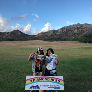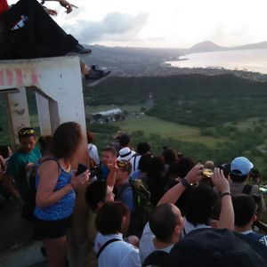 オアフ島最終日の早朝に参加しました。開門待ちの車で渋滞が出来る程の人気のツアーです。ガイドさんの説明をよく聞いて、下山後の記念写真までたどり着きましょう。息子がペットボトルを忘れたので購入することにしました。登る前のトイレ近くに飲料水の自販機があるのですが、カードしか使えず、うまく 購入出来ませんでした。持参をお勧めします。スムージーはその場でも買えます。