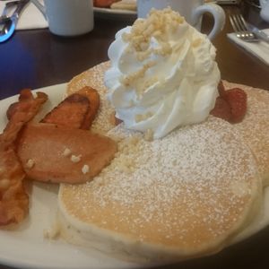 登頂後は、エックスシングスで有名なパンケーキを食べました。ロコモコと選択できます。(選ばなかったけど、ロコモコもすごくおいしそうでした。)
