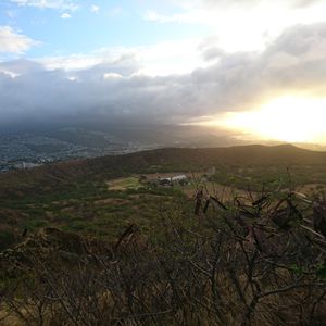ダイヤモンドヘッドのビジターセンターで下車して登山。朝日の見えるいい時間帯でした。