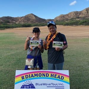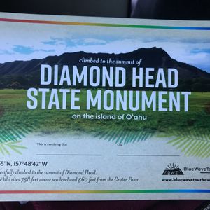 ダイヤモンドヘッドに着いてから登るのは結構ハードだったんですが、登りきった後の空気が綺麗で景色も良くて登ってよかったなって思いました!降ってからも写真撮影や登山証明書がもらえるので良かったです。