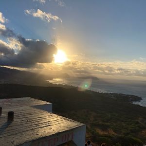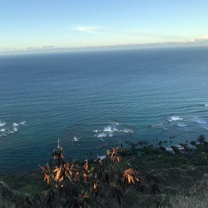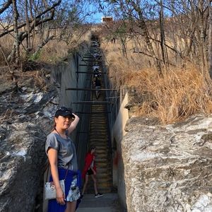 最初は緩やかな坂が続き、最後は階段が続きます。急で狭い階段を通り、顔が火照ってきます。登ること25分、思ったほど時間はかからずに頂上に着きました。風が程よく吹いていて、写真を撮ったり、持ってきたココナッツウォーターを飲んだりして過ごしました。途中で小雨が降っても大丈夫。ハワイはころころ天気が変わるのです。つぎの瞬間には晴れてました。