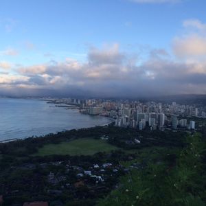 ダイヤモンドヘッド登山後パラセーリングへ行くツアーでした!ダイヤモンドヘッドはややお天気が悪く残念でしたが、頂上に着くと晴れて最高の景色でした(^^)