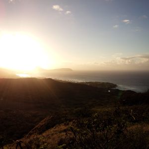 朝5時50分に集合し、ダイヤモンドヘッドへ。入り口に行く前に中腹で太陽が出てきたので車を停車して頂き写真を撮った。