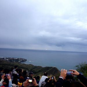 集合時間の5時15分前にすでに出発し、ダイヤモンドヘッド入口に着いたのは5時半でした。また暗い夜空を眺めて、写真を撮る時間もゆっくりありました。6時の開門と当時に車で麓へ。そこからは1時間半の自由時間で一斉に山へ登ります。先頭集団にいたので1時間後には下山して麓にいました。先頭集団にはいたのですが、かなりの人数の登山客がいるため、すでに山頂の狭いスペースは人でぎゅうぎゅう。のんびり登っていると人の渋滞に巻き込まれますので、さくさくずんずん、できるだけ早く登った方が、余裕を持って写真撮影もできていいと思います。