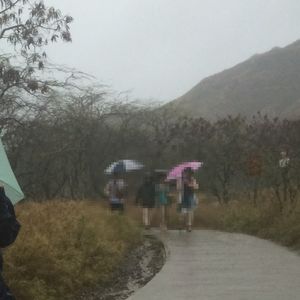 ダイヤモンドヘッドにまず登るので心配しましたが、そこはやはりHawaii、すぐに止んで、頂上では美しい虹を見ることができました。