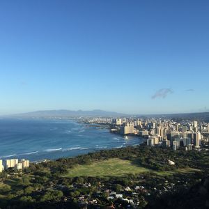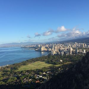 頂上からの眺めはワイキキが一望できて綺麗で、気分も清々しかったです。ただ、頂上は狭く、混雑するので、私が下る頃は頂上への列ができてました。