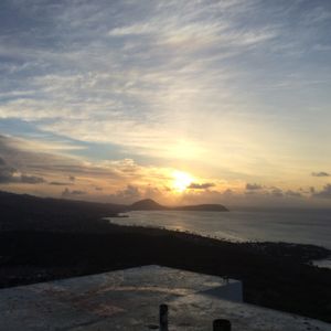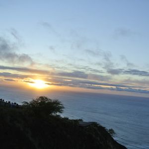 4泊6日の旅、仲の良いお友達と中三日目にVELTLAさんのツアーでダイヤモンドヘッドの旅を組ませていただきました。早朝から集合し、ダイヤモンドヘッドへ向かう途中の丘で朝日のシャッターチャンス!みんな一斉に降り、朝日が昇るのを待ちました。だが生憎の曇り…弱冠の小雨でもあり、綺麗な朝日は見えませんでした。天候の事なので仕方ないですが期待していたので、ショックでした。また時間になりダイヤモンドヘッドに向かうと山道で、それを知らなかった私たちはその後海に行く予定だったのでビーサンでした。足元が悪くとても危険な思いをしました。