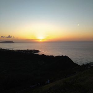 スタートはまだ暗い中、雨降りの中。終始、降ったり止んだらで傘をさしながら、ライトで足元照らしながら。結局、ハッキリした日の出は見えませんでしたが、途中途中、眼下に住宅街や海を眺めることができ、素晴らしい眺望でした。登山者が多く山頂付近は大混雑でした。