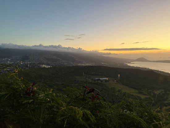 パラパラ雨で雲がありましたが、ダイヤモンドヘッドからのサンライズ🌄は最高でした。晴れていたら更に素晴らしい景色だったことでしょう。
