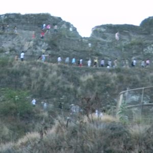 ダイヤモンドヘッドの駐車場到着後、1時間20分ほどで往復するので年配の方には少しきついように思えました。山頂で写真を沢山撮りたかったので早足で登りましたが、ギリギリでした。