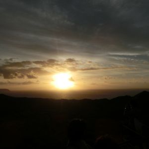 暗い中歩きだし、道もさほどでこぼこでなく(でもやはりスニーカーが正解)、思ったよりも楽に登頂。頂上に着いた時にはまだホノルルの夜景も楽しめ、360度のパノラマに感動しました。