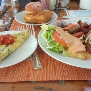 ダイヤモンドヘッドの登頂は、思ったより楽でした。ただ頂上で日の出を見たい人ばかりなので、早く上らないと混雑していて大変です。でもその景色はとても清清しく気持ちが良かったです。そのあとカハラでのブュッフェはちょうどお腹もすいていたし庭もとても素敵で食事が益々美味しく思えました。さすがにSグレードのホテルの朝食でした。