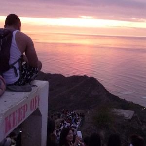 このサイトのツワーを検索していると、「ダイヤモンドヘッド山頂で朝日を」に出会い、早速注文しました。天気が心配でしたが、その時はその時と覚悟を決め、しかも朝5時過ぎという条件でしたが行ってよかったと思いました。特にツワー用のバスはトンネル前の入場時間に合わせて近くまで他の車を追い抜いて行き、優先されているのを感じました。日の出の15分くらい前に山頂へつきましたが、雨が降りだし、朝日をあきらめかけた瞬間、雲の合間から朝日が顔を出しました。一斉に歓声が上がりました。登頂は長蛇の列ができます。山ですから突然の雨が降ることがあるようです。雨具、懐中電灯はあったほうがよいと思います。もちろん持っていきました。